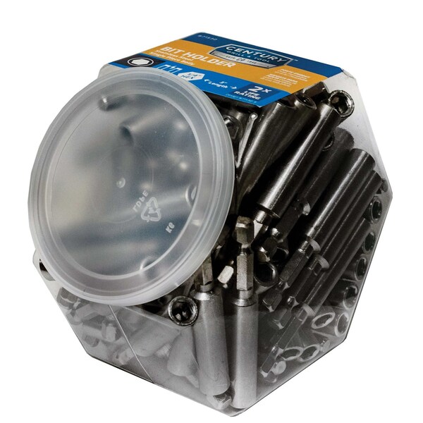 Century's Professional Insert Bit Holder has a heavy duty, single piece stainless steel construction. The magnetic "c" ring holder fits all types of 1/4" hex insert screwdriving bits. Century's S2 Screwdriving Bits are made from premium S2 steel for long tool life while driving common or mild steel screws or case hardened screws. Lasts 2X longer than standard screwdriving bits. Bulk Jar