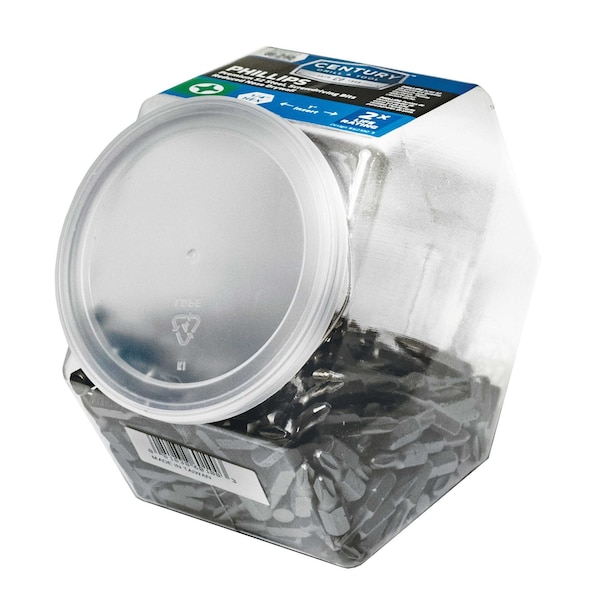 Century's S2 Screwdriving Bits are made from premium S2 steel for long tool life while driving common or mild steel screws or case hardened screws. Lasts 2X longer than standard screwdriving bits. Available in 1" insert or 2" and longer power bits. Bulk Jar