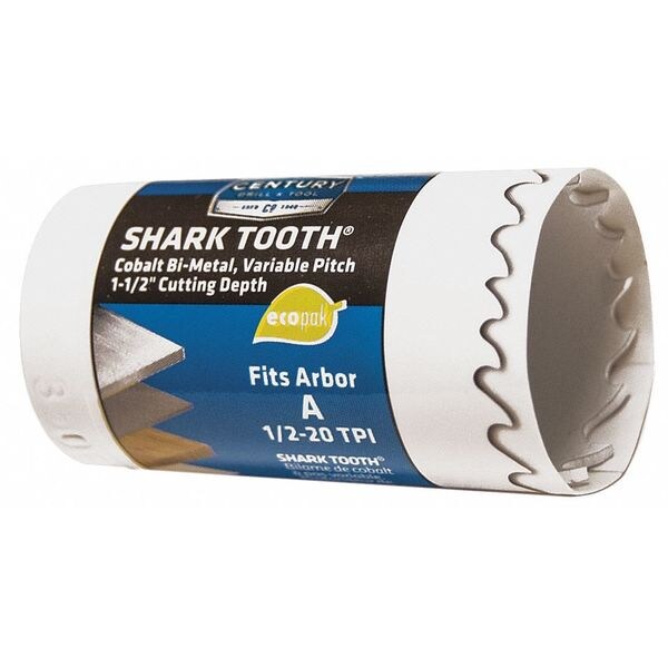 Century's Shark Tooth® Hole Saws are professional bi-metal saws with 8% cobalt high speed steel teeth, electron welded to shatterproof shock absorbing alloy bodies. Shark Tooth’s variable pitch tooth pattern cuts clean through stainless steel, brass, aluminum, pipe steel, nail embedded wood, hardwood, plywood, sheet metal, fiberglass, and plastic. Cuts up to 1-1/2" deep holes. Arbors sold separately.