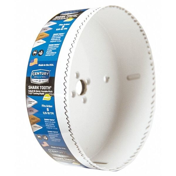Century's Shark Tooth® Hole Saws are professional bi-metal saws with 8% cobalt high speed steel teeth, electron welded to shatterproof shock absorbing alloy bodies. Shark Tooth’s variable pitch tooth pattern cuts clean through stainless steel, brass, aluminum, pipe steel, nail embedded wood, hardwood, plywood, sheet metal, fiberglass, and plastic. Cuts up to 1-1/2" deep holes. Arbors sold separately.