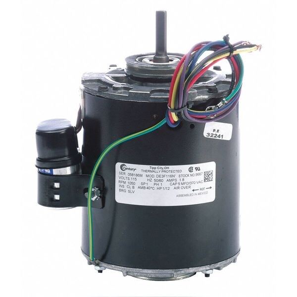 Unit Heater Motor, Single Phase, Motor Design Permanent Split Capacitor, 1/12 HP, Nameplate RPM 1050, No. of Speeds 1, Voltage 115V AC, 1.08 A Full Load Amps, 42Y Frame, 50 Hz Hz, Usable @ 208V No, Usable @ 200V No, Motor Service Factor 1, Motor Thermal Protection Auto, Ins. Class B, Max. Ambient Temp. 40 Degrees C, Motor Shaft Rotation CW/CCW, Motor Enclosure Design Totally Enclosed, Motor Mounting Type Ring, Motor Frame Material Steel, Motor Mounting Position Horizontal, Shaft Length 2 in