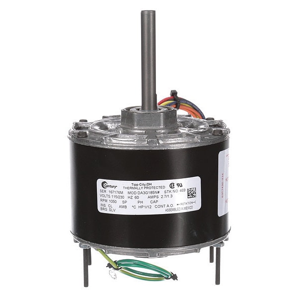 Direct Drive Motor, Single Phase, Motor Design Shaded Pole, 1/12 HP, Nameplate RPM 1,050, No. of Speeds 1, Voltage 115/230V AC, Full Load Amps 2.7/1.3 A, 42 Frame, OEM Replacement Brand Kramer Trenton, Replacement For DA3G096, Usable @ 208V No, Usable @ 200V No, 60 Hz, Motor Service Factor 1, Motor Thermal Protection Auto, Ins. Class A, Max. Ambient Temp. 40 Degrees C, Duty Cycle Continuous, Motor Shaft Rotation CWSE, Motor Enclosure Design Open Air-Over, Motor Mounting Type Stud