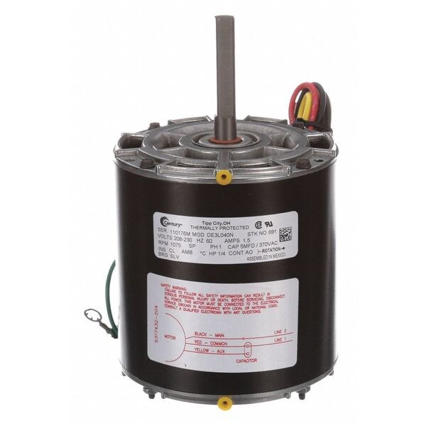 Direct Drive Motor, Single Phase, Motor Design Permanent Split Capacitor, 1/4 HP, Nameplate RPM 1,075, No. of Speeds 1, Voltage 208-230V AC, Full Load Amps 1.5 A, 42 Frame, OEM Replacement Brand Magic Chef, Replacement For 322P859, Usable @ 208V Yes, Usable @ 200V No, 60 Hz, Motor Service Factor 1, Motor Thermal Protection Auto, Ins. Class A, Max. Ambient Temp. 40 Degrees C, Duty Cycle Continuous, Motor Shaft Rotation CCWSE, Motor Enclosure Design Open Air-Over, Motor Mounting Type Face
