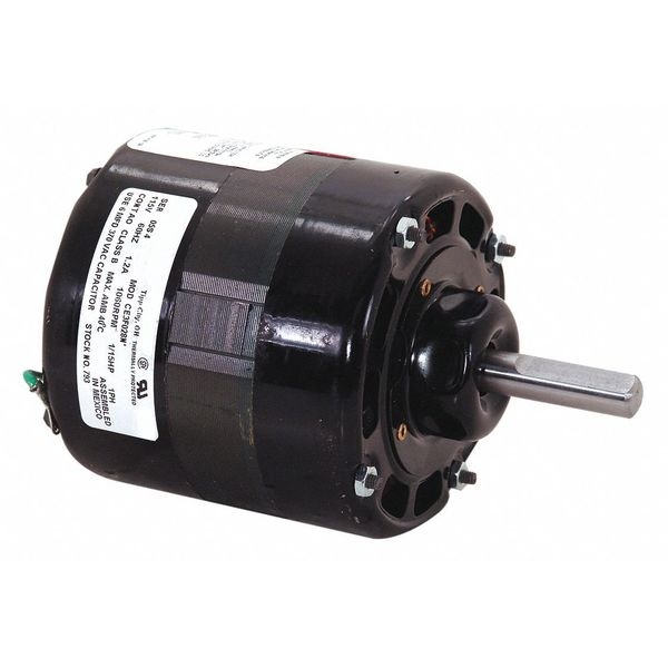 Ventilation Motor, Single Phase, Motor Design Permanent Split Capacitor, 1/15 HP, Nameplate RPM 1,060, No. of Speeds 3, Voltage 115V AC, Full Load Amps 1.02 A, 4.4 Frame, Usable @ 208V No, Usable @ 200V No, Motor Thermal Protection Auto, 60 Hz Hz, Motor Service Factor 1, Ins. Class B, Motor Shaft Rotation CW/CCW, Max. Ambient Temp. 40 Degrees C, Duty Cycle Continuous, Lead Length 24 1/2 in, Motor Enclosure Design Open Air-Over, Motor Mounting Type Ring, Motor Mounting Position Horizontal