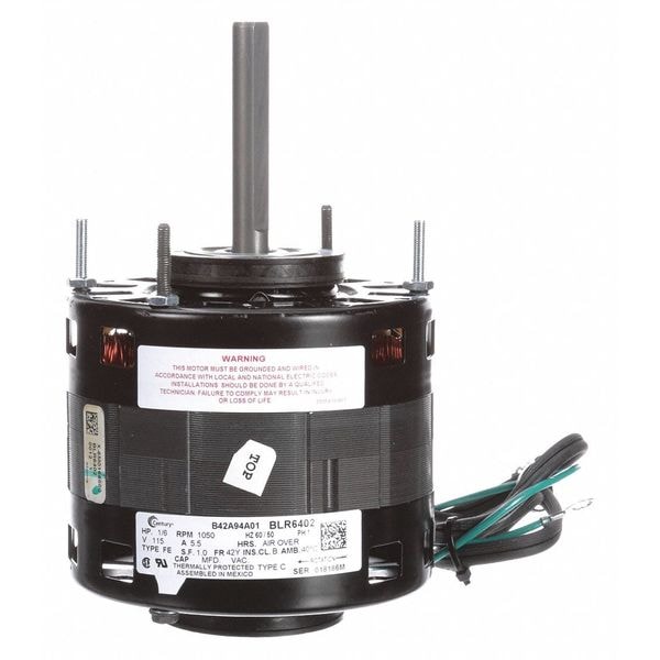 Fan and Blower Motor, Single Phase, Motor Design Shaded Pole, 1/6 hp HP, Nameplate RPM 1,050 RPM, No. of Speeds 1, Voltage 115V AC, 5.05 A Full Load Amps, 42Y Frame, Output Watts 130 W, 60 Hz Hz, Usable @ 208V Not Usable at 208V, Usable @ 200V Not Usable at 200V, Motor Service Factor 1, Motor Thermal Protection Auto, Ins. Class B, Max. Ambient Temp. 40 Degrees C, Motor Shaft Rotation CCWLE, Motor Enclosure Design Open Air Over, Motor Mounting Type Resilient Ring, Motor Frame Material Steel