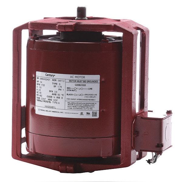 Circulating Pump Motor, Compatible with Brand Century, Compatible with Grainger Part Number Not Applicable, Compatible with Manufacturer Model Number Not Applicable, Compatible with Pump Type In-Line Circulating Pumps, Compatible with Series Not Applicable, Horsepower 1/4 hp, Maximum Ambient Temperature 122 Degrees F, Maximum RPM 1,725 RPM, Motor Enclosure Design Open Drip Proof, Motor Thermal Protection Auto, Nameplate Voltage 115V AC, Number of Speeds 1, Phase Single, Body Diameter 5 9/16 in