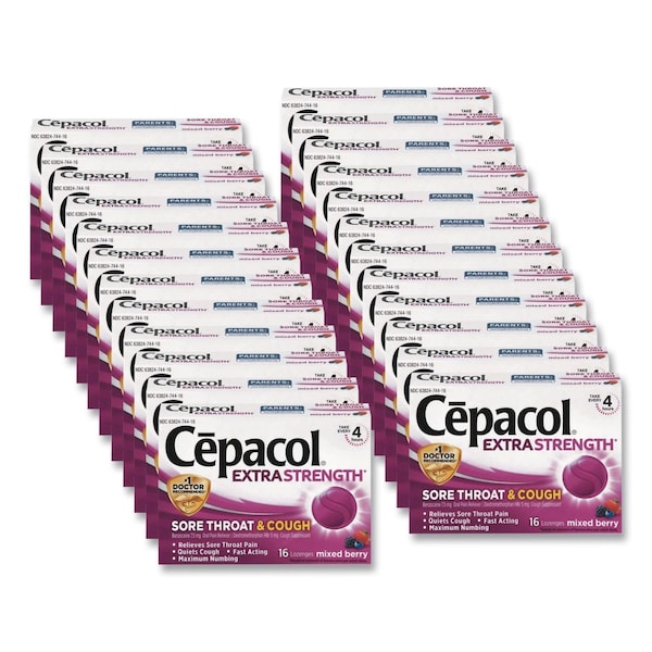 Cepacol® Sore Throat and Cough Lozenges, Mixed Berry, 16 Lozenges, 24 Packs/Carton