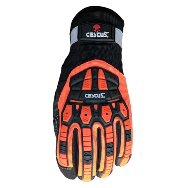 The HandMax® Pro sets the new standard for breathability and protection. The High Dexterity Palm surface has a light palm padding for wearer comfort. A hidden layer of our new Slashweave material invisibly protects hands further from cut and puncture injury with an ANSI/ ISEA 105-2016 A6 rating. Double stitching on the palm reinforces common wear points without creating excess palm bulk. The HandMax Pro® uses Ventilated TPR to increase impact protection while maintaining maximum breathability. Curved finger construction helps limit user fatigue and increase dexterity. High-Visibility fabric and a reflective strip on the cuff maximizes hand visibility with a slim ranch cuff that provides vented, easy donning.