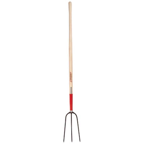 3 oval tines 12" long 7 1/4" spread at points; for transferring hay and straw; 48" ash handle.