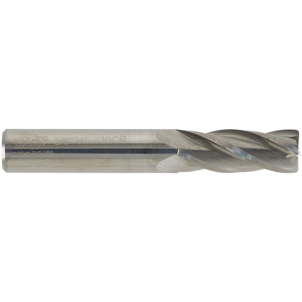 4Fl Std Cr End Mill 3/8" Dia 1" Loc 2-1/2" Oal W/.030 Cr