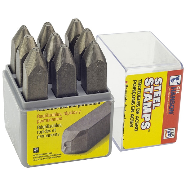 Hand Stamp Kit, Character Height 3/8 in, Character Type Set Number Set, Characters Included 0 to 8 (With 6 Serving as 9), Duty Light, For Maximum Surface Hardness 30 HRC, For Shank Diameter 1/2 in, Holder Length Not Applicable, Holder Shank Size Not Applicable, Holder Width Not Applicable, Impression Character Style Sharp-Face, Includes Holder No, Letter Casing Not Applicable, Maximum Characters per Line Not Applicable, Product Type Hand Stamp Kit