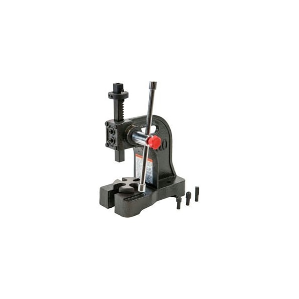 PALMGREN 9661051 - 1/2 TON ARBOR PRESS DELIVERS THE HEAVY FORCE NEEDED FOR RIVETING, SQUEEZING, PUNCHING, BENDING, AND OTHER PRESSING APPLICATIONS. REMOVABLE MACHINED STEEL ANVIL PROVIDES AMPLE WORK SUPPORT WITH DIFFERENT SLOT POSITIONS. DEPTH STOP SECURELY CLAMPS TO THE RAM AND WITHSTANDS FULL PRESSURE. A LOCKABLE FINE ADJUSTMENT ADJUSTING SCREW ACCURATELY LIMITS THE DEPTH OF THE RAM STROKE. PUNCHES OR TOOL MAY BE ADDED TO THE END OF THE RAM WITH THE AID OF A MAGNETIC INSERT. THE RAM IS REVERSIBLE WITH ONE END SOLID AND THE OTHER WITH A HOLE AND MAGNET TO HOLD BITS AND TOOLS.