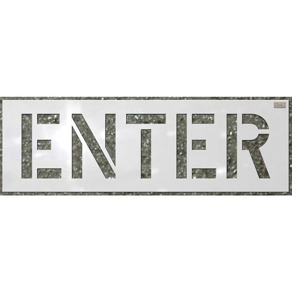 Individual Stencil, Character Type Message, Duty Heavy, FAA AC 150/5340-1K Compliant No, Font Highway Gothic, Included Characters, Messages, and Symbols Enter, Individual Character Height Not Applicable, Individual Character Width Not Applicable, Interlocking No, Interlocking Orientation Horizontal, Material Polyethylene, Message or Symbol Height 6 in, Message or Symbol Width 4 in, MUTCD Compliant No, Number of Pieces 1, Overall Stencil Height 12 in, Overall Stencil Thickness 0.125 in