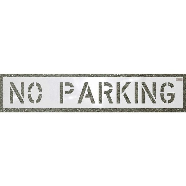 Stencil, No Parking, 4 in Character Height, Highway Gothic Font, Polyethylene, White, 1 Pieces