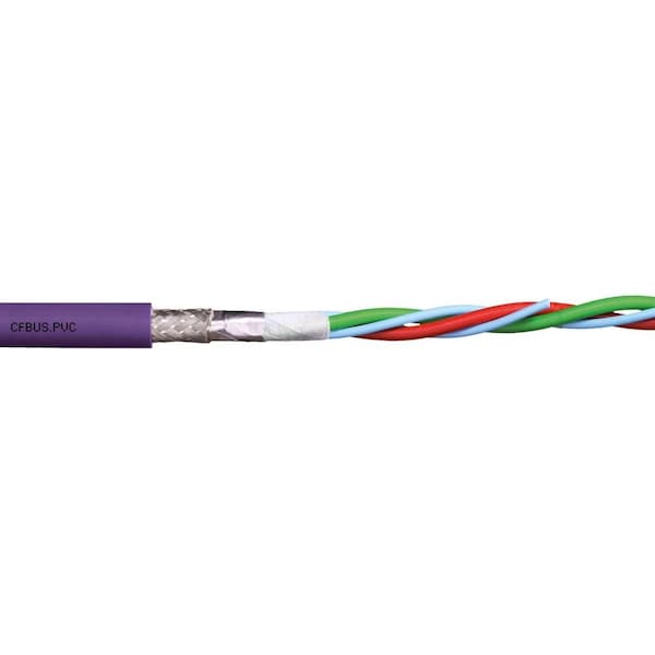 Bus Cable, Bus System Profibus, Conductor Color Code Green, Red, Conductor Grouping (1) Pair 20 AWG, Conductor Material Copper, Impedance 150 ohm, Includes Ground No, Jacket Color Red, Jacket Material PVC, Length Order by the Foot, Maximum Acceleration 98.4 m/sq sec, Maximum Operating Temperature 158 Degrees F, Maximum Velocity - Supported 7 fps, Maximum Velocity - Unsupported 10 fps, Minimum Bend Radius Factor - E-Chain 12.5 x OD, Minimum Bend Radius Factor - Fixed 7 x OD