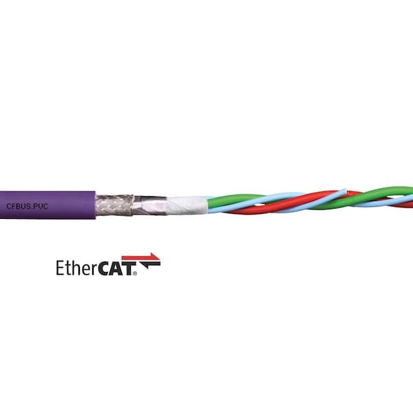 Bus Cable, Bus System Ethernet/CAT5, Conductor Color Code Brown, Green, White, Yellow, Conductor Grouping (4) 24 AWG, Conductor Material Copper, Impedance 100 ohm, Includes Ground No, Jacket Color Red, Jacket Material PVC, Length Order by the Foot, Maximum Acceleration 98.4 m/sq sec, Maximum Operating Temperature 158 Degrees F, Maximum Velocity - Supported 7 fps, Maximum Velocity - Unsupported 10 fps, Minimum Bend Radius Factor - E-Chain 12.5 x OD, Minimum Bend Radius Factor - Fixed 7 x OD