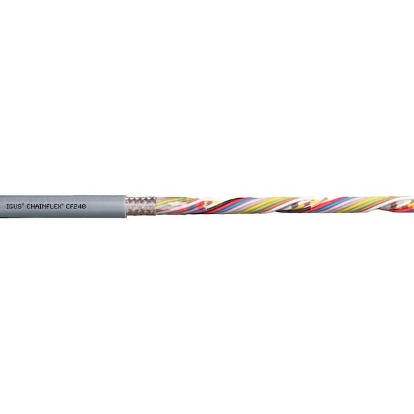 Data Cable, Conductor Color Code In Accordance with DIN 47100, Conductor Configuration Single, Conductor Material Copper, Conductor Size 26 AWG, Includes Ground No, Jacket Color Gray, Jacket Material PVC, Length Order by the Foot, Maximum Acceleration 65.6 m/sq sec, Maximum Operating Temperature 158 Degrees F, Maximum Velocity - Supported 7 fps, Maximum Velocity - Unsupported 10 fps, Minimum Bend Radius Factor - E-Chain 10 x OD, Minimum Bend Radius Factor - Fixed 5 x OD