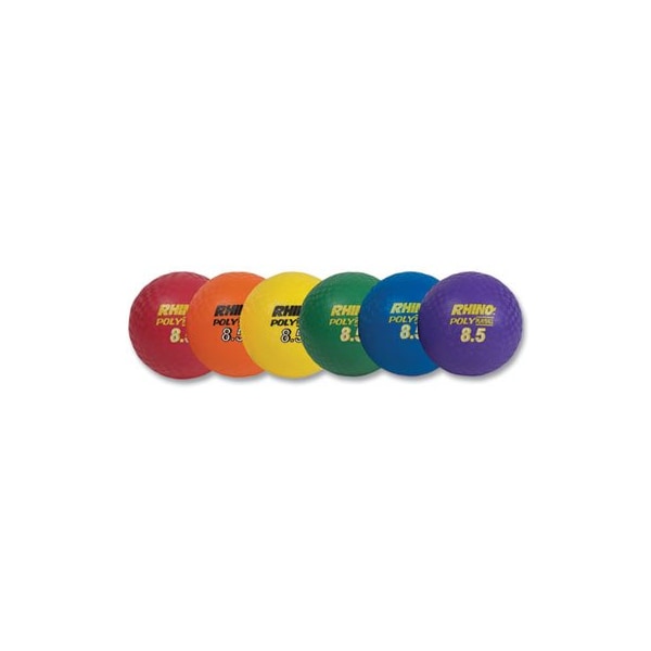 Rhino Playground Ball Set, 8 1/2in Diameter, Rubber, Assorted, 6PK