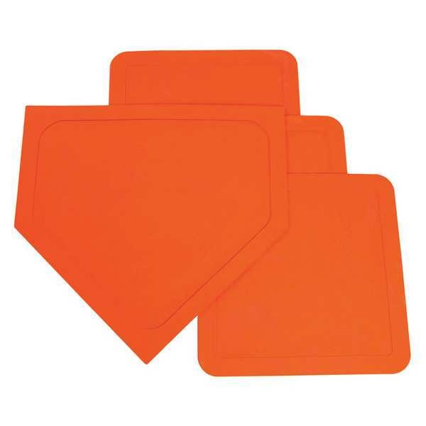 Base Set, Product Type Base Set, Base Style Single Base, Color Orange, Material Rubber, Overall Length 17 in, Overall Width 17 in, Features Molded Non-Marking Vinyl, Includes (3) Bases, Home Plate, Package Quantity 4