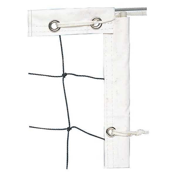 Volleyball Net, Product Type Volleyball Net, For Use With Steel and Aluminum Volleyball Systems, Overall Height 30 in, Overall Width 32 ft, Construction 2.5 in Wide White Headband Top and Bottom, 3 mm Braided Polyethylene Netting, Includes Net Tension Straps, Features Durable Rip Resistant 3 Mm Knot Less Nylon Netting, Side Pockets and Dowels, Vinyl-Coated Steel Cable Top and Bottom