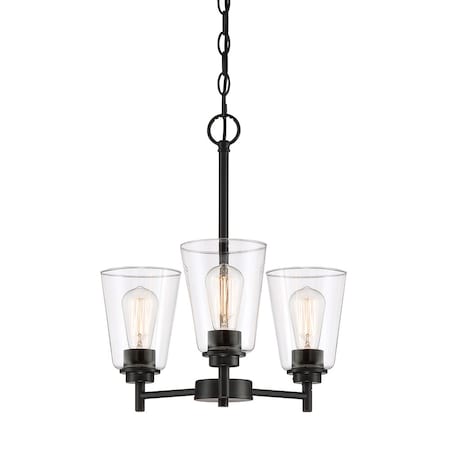Westin 3 Light Modern Matte Black with Clear Glass Shades Chandelier For Dining Rooms