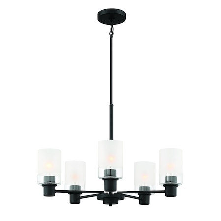 Cedar Lane 5 Light Modern Matte Black with Clear Etched Glass Shades Chandelier For Dining Rooms