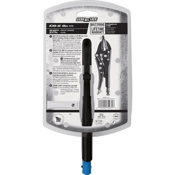 CHANNELLOCK Locking Pliers make fast and easy work of your toughest jobs. This full line of locking tools offer unique features such as an Extended-Release Lever to avoid finger pinch and allow for one-handed use when clamping or gripping stubborn fasteners round or flat stock. Forged Steel Jaws maximize strength while a centered steel rod and lever hold a tight handle alignment. Retain jaw position with the lock nut feature supported by a durable piano wire spring. Epoxy Coating provides ultimate rust prevention and is extremely spatter resistant. Lock up a hard days work with CHANNELLOCKs full line of Locking Pliers.