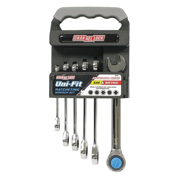 The Chanellock 38036 Ratcheting Wrench Set is the ideal set of tools for your next project. This is a combination wrench set that comes with 6 different sizes to handle fasteners of various types and sizes. The 12-point wrenches are available in both SAE and metric measurements. They have a ratcheting feature, which allows you to work on tight spots without needing two hands. Their chrome finish provides superior rust resistance, while their storage rack keeps your tools organized and within reach when needed. When it comes to tightening nuts and bolts, the Chanellock 38036 Ratcheting Wrench Set can help you get the job done efficiently and quickly.