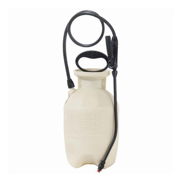 One gallon poly sprayer with 1/4 gpm fan tip nozzle for easy and even application. Features curved wand and reinforced hose. Clear tank for ease in checking fluid level.