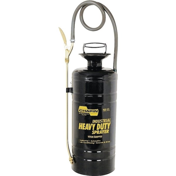 The CHAPIN industrial metal Viton heavy-duty sprayer has a 3 gal tri-poxy lined steel tank that provides triple protection against rust, corrosion and damage from denting. Featuring a wide mouth funnel opening for easy filling and cleaning.