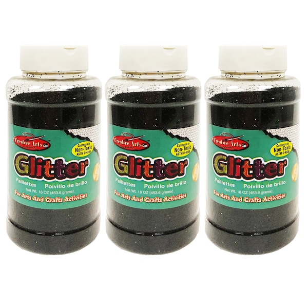 Creative Arts Glitter, 1 lb. Bottle, Black, PK3