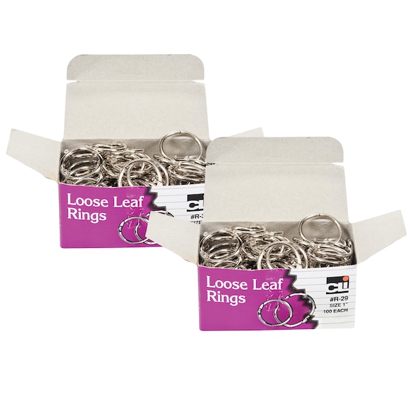Loose Leaf Book Rings, 1", 100 Per Box, PK2