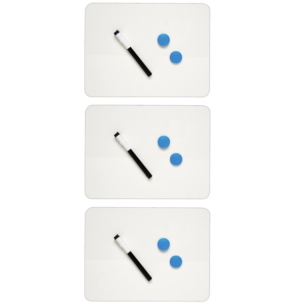 Magnetic Dry Erase Board, Two Sided, Plain/Plain, 9" x 12", PK3