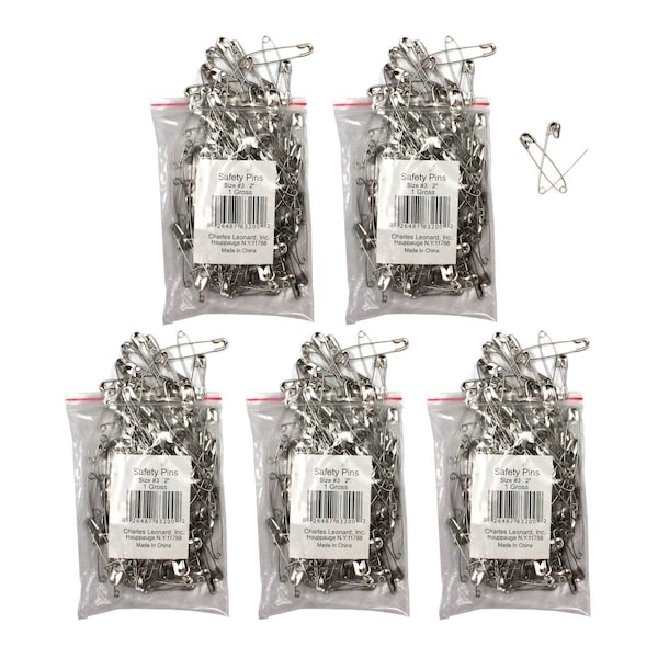 Smooth, sharp points for safe, easy penetration. Nickel-plated steel pins feature rust resistant finish. Each pack includes 144 safety pins. Sold as 5 packs for a total of 720 safety pins.