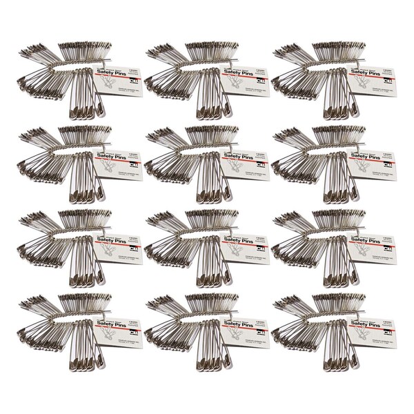 Nickel-plated steel pins with a rust-resistant finish. Features smooth, sharp points for safe and easy penetration. Each pack includes 50 safety pins in assorted sizes. Sold as 12 packs for a total of 600 pins.