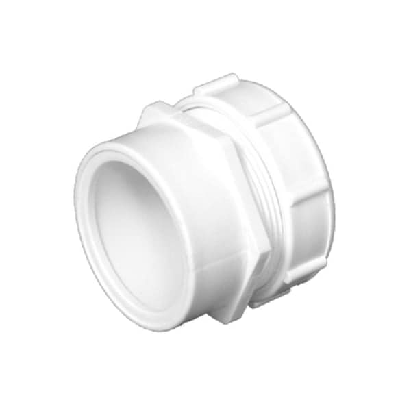 112 x 112 PVCDWV Fitting Male Trap Adapter, S x SJ, White, Used To Adapt PVC Fitting Hub Tubular Traps At Wall Or Floor, Solvent Welds Into 112 DWV Fitting Hub