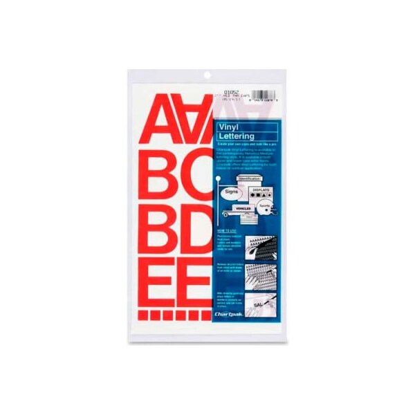 Chartpak vinyl numbers/letters, 2"h, red easily apply these 2" vinyl numbers and letters to clean dry surfaces, indoors and outdoors. Ideal for displays, signs, posters and equipment identification. Helvetica style letters and numbers have self-adhesive backings. Set includes uppercase letters from a to z, numbers from 0 to 9 (one each), and symbols: 54 periods, 14 commas, 21 dashes, six asterisks, one dollar sign, one cent sign, one question mark and one exclamation point.