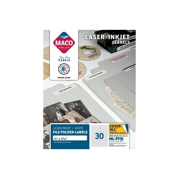 Maco, LASER/INKJET WHITE FILE FOLDER LABELS, 0.66 X 3.44, WHITE, 50PK