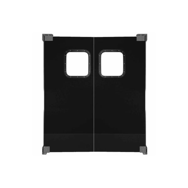 Chase doors light to medium duty service door two-way swing doors have been engineered to cost effectively enhance traffic door functionality. an excellent door for restaurants, department stores or specialty retail applications, this lightweight door opens with minimal resistance and gently closes by gravity. The simple and attractive door panel contains no wood or organic material, as the textured abs face sheets and extra wide perimeter abs frame encapsulates an extruded, polymer honeycomb core. Stainless steel end capping presents a clean, finished appearance and additional edge protection. Proven hinge mechanism mounts to the jamb with an offset cam and hardened rollers for minimal maintenance and years of reliable service. 12" kick plates add additional door rigidity, and are color-matched with the door for an upscale look. High-visibility 14"w x 16"h acrylic window is set in a black vacuum formed abs frame. note: frame not included. Frame is available; please call for more information.