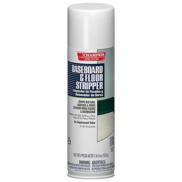 Champion Sprayon Aerosol Baseboard & Floor Stripper is a foaming gel designed for removing old wax, acrylics, dirt, and darkened buildup on baseboards and floors along walls and low-traffic areas. It features an alkaline base with penetrating cleaners and detergents for effective emulsification and loosening of deposits. The formula has reduced odor and offers ultimate cling and penetration. The spray tip dispenses a wide stream and allows upside-down use for convenience. Ideal for use with a clean pad or brush to restore surfaces, this product is available in a pack of 12.