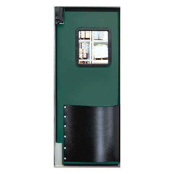 Swinging Door, Door Height 7 ft, Door Width 2 1/2 ft, Door Color Green, Swinging Door Material Polyethylene, Textured Finish, Door Thickness 1 1/2 in, Number of Doors 1, Window Height 18 in, Window Width 12 in, Bumpers Included Yes, Door Seals Included Yes, Opening Height 7 ft, Opening Width 2 ft 6 in, Window Color Clear, Window Material Polycarbonate, Left and Right Jamb, Insulation Value 9.86, Standards NSF, USDA, Swinging Door Core Material Non-CFC Urethane Core, Window Included Yes