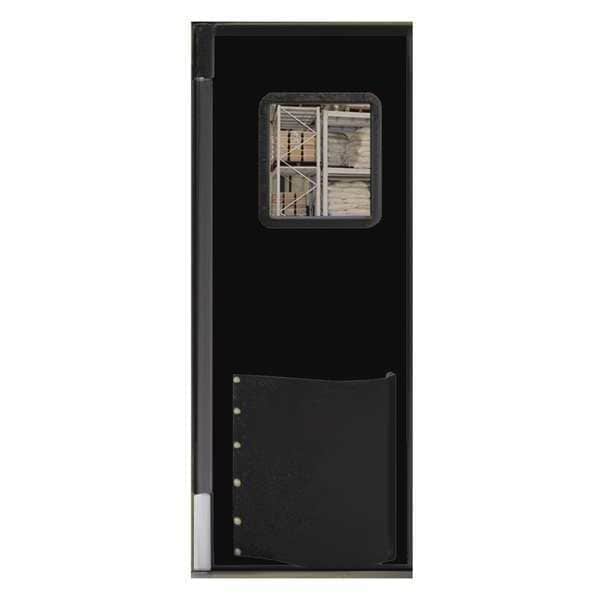 Swinging Door, Door Height 7 ft, Door Width 3 ft, Door Color Black, Swinging Door Material Polyethylene, Textured Finish, Door Thickness 3 3/4 in, Number of Doors 1, Window Height 16 in, Window Width 16 in, Bumpers Included Yes, Door Seals Included Yes, Opening Height 7 ft, Opening Width 3 ft, Window Color Clear, Window Material Polycarbonate, Left and Right Jamb, Insulation Value 25, Standards EISA, NSF, USDA, Swinging Door Core Material Non-CFC Urethane Core, Window Included Yes