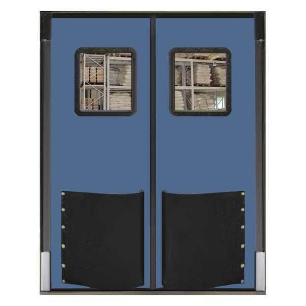 Swinging Door, Door Height 7 ft, Door Width 5 ft, Door Color Blue, Swinging Door Material Polyethylene, Textured Finish, Door Thickness 1 1/2 in, Number of Doors 2, Window Height 16 in, Window Width 16 in, Bumpers Included Yes, Door Seals Included Yes, Opening Height 7 ft, Opening Width 5 ft, Window Color Clear, Window Material Polycarbonate, Left and Right Jamb, Insulation Value 9.86, Standards USDA, Swinging Door Core Material Non-CFC Urethane Core, Window Included Yes, 1 Pair