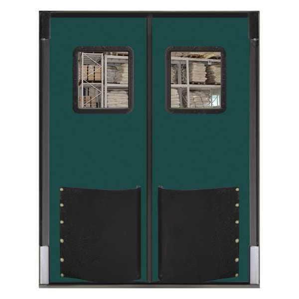 Swinging Door, Door Height 7 ft, Door Width 5 ft, Door Color Green, Swinging Door Material Polyethylene, Textured Finish, Door Thickness 3 3/4 in, Number of Doors 2, Window Height 16 in, Window Width 16 in, Bumpers Included Yes, Door Seals Included Yes, Opening Height 7 ft, Opening Width 5 ft, Window Color Clear, Window Material Polycarbonate, Left and Right Jamb, Insulation Value 25, Standards EISA, NSF, USDA, Swinging Door Core Material Non-CFC Urethane Core, Window Included Yes, 1 Pair