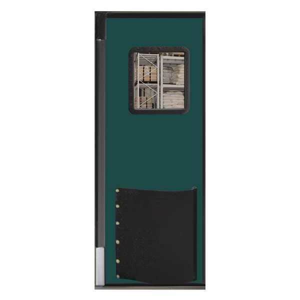 Swinging Door, Door Height 8 ft, Door Width 3 ft, Door Color Green, Swinging Door Material Polyethylene, Textured Finish, Door Thickness 1 1/2 in, Number of Doors 1, Window Height 16 in, Window Width 16 in, Bumpers Included Yes, Door Seals Included Yes, Opening Height 8 ft, Opening Width 3 ft, Window Color Clear, Window Material Polycarbonate, Left and Right Jamb, Insulation Value 9.86, Standards USDA, Swinging Door Core Material Non-CFC Urethane Core, Window Included Yes