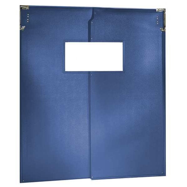 Swinging Door, Door Height 8 ft, Door Width 5 ft, Door Color Blue, Swinging Door Material PVC, Textured Finish, Door Thickness 1/4 in, Number of Doors 2, Window Height 14 in, Window Width 15 in, Bumpers Included No, Door Seals Included Yes, Opening Height 8 ft, Opening Width 5 ft, Window Color Clear, Window Material Vinyl, Left and Right Jamb, Standards USDA, Window Included Yes, 1 Pair
