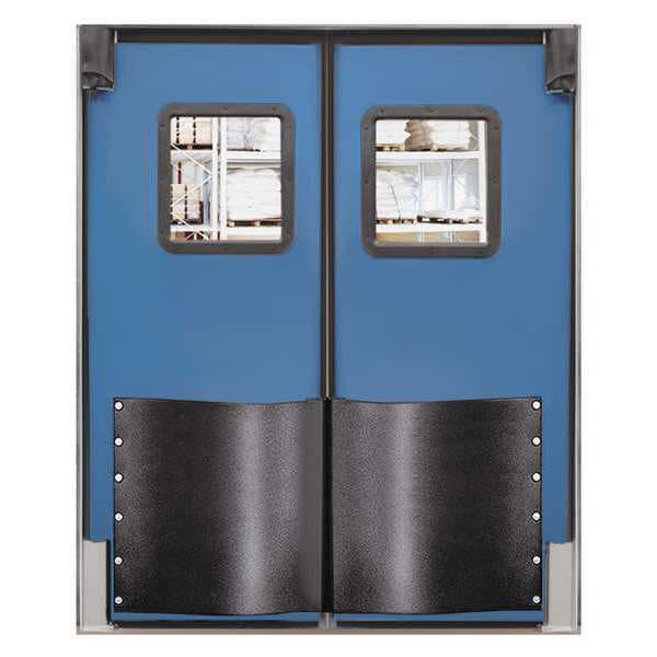 Swinging Door, Door Height 8 ft, Door Width 7 ft, Door Color Royal Blue, Swinging Door Material Polyethylene, Textured Finish, Door Thickness 1 1/2 in, Number of Doors 2, Window Height 16 in, Window Width 16 in, Bumpers Included Yes, Door Seals Included Yes, Opening Height 8 ft, Opening Width 7 ft, Window Color Clear, Window Material Polycarbonate, Left and Right Jamb, Insulation Value 9.86, Standards NSF, USDA, Swinging Door Core Material Non-CFC Urethane Core, Window Included Yes, 1 Pair