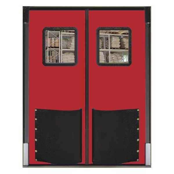 Swinging Door, Door Height 7 ft, Door Width 5 ft, Door Color Red, Swinging Door Material Polyethylene, Textured Finish, Door Thickness 1 1/2 in, Number of Doors 2, Window Height 16 in, Window Width 16 in, Bumpers Included Yes, Door Seals Included Yes, Opening Height 7 ft, Opening Width 5 ft, Window Color Clear, Window Material Polycarbonate, Left and Right Jamb, Insulation Value 9.86, Standards USDA, Swinging Door Core Material Non-CFC Urethane Core, Window Included Yes, 1 Pair