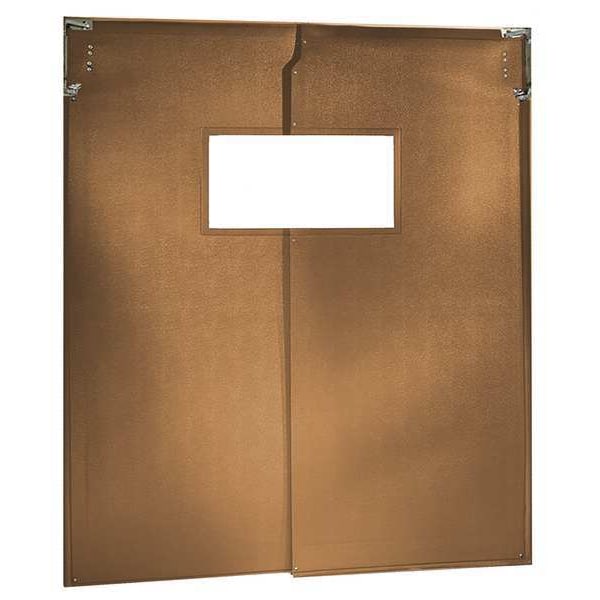 Swinging Door, Door Height 8 ft, Door Width 5 ft, Door Color Brown, Swinging Door Material PVC, Textured Finish, Door Thickness 1/4 in, Number of Doors 2, Window Height 14 in, Window Width 15 in, Bumpers Included No, Door Seals Included Yes, Opening Height 8 ft, Opening Width 5 ft, Window Color Clear, Window Material Vinyl, Left and Right Jamb, Standards USDA, Window Included Yes, 1 Pair