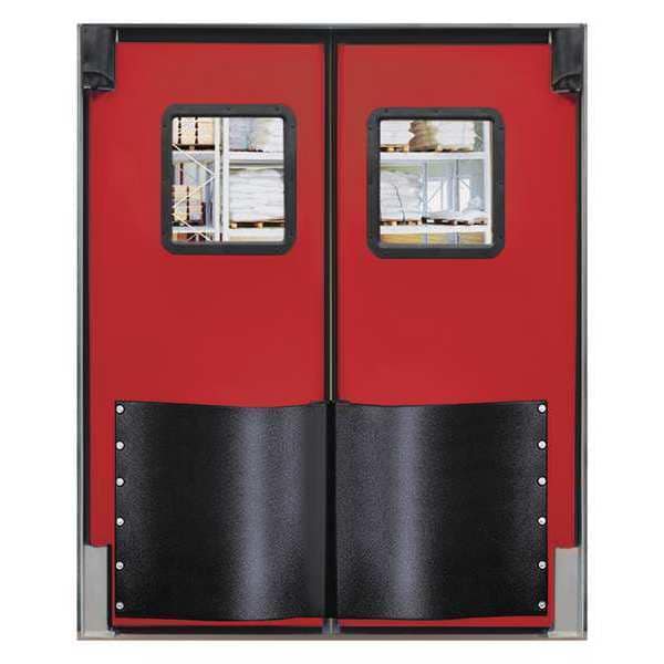 Swinging Door, Door Height 8 ft, Door Width 6 ft, Door Color Red, Swinging Door Material Polyethylene, Textured Finish, Door Thickness 1 1/2 in, Number of Doors 2, Window Height 16 in, Window Width 16 in, Bumpers Included Yes, Door Seals Included Yes, Opening Height 8 ft, Opening Width 6 ft, Window Color Clear, Window Material Polycarbonate, Left and Right Jamb, Insulation Value 9.86, Standards NSF, USDA, Swinging Door Core Material Non-CFC Urethane Core, Window Included Yes, 1 Pair